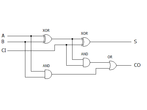となります。これは、任意の桁数の足し算回路を実現するために必要となる、1bit分の加算論理となります。
