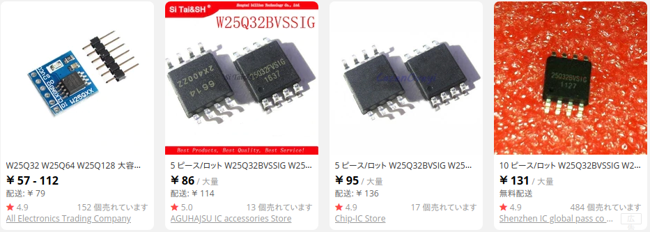 推奨されているのは、このあたりの安いSPI-Flashです。適当なのをどうぞ…。モジュール化されているやつの方が楽そうではありますね…
