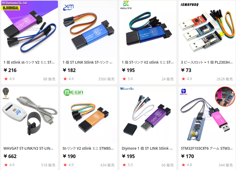- ST-Link。あると何気に便利です。AliExpress では、…とある理由で非常に安く売っているものがあります。