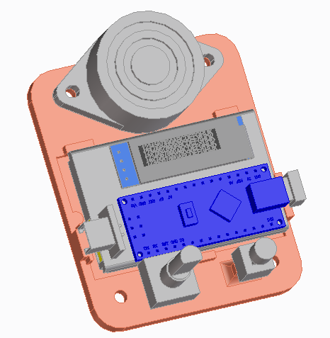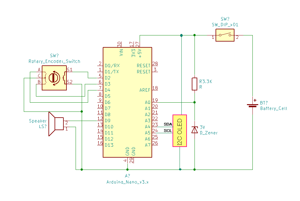 スピーカーはピエゾスピーカです。ちゃんと使えばどえらい音が鳴るはずなのですが、直接PWM波形を入れるだけにして音圧は控えめにしています。
