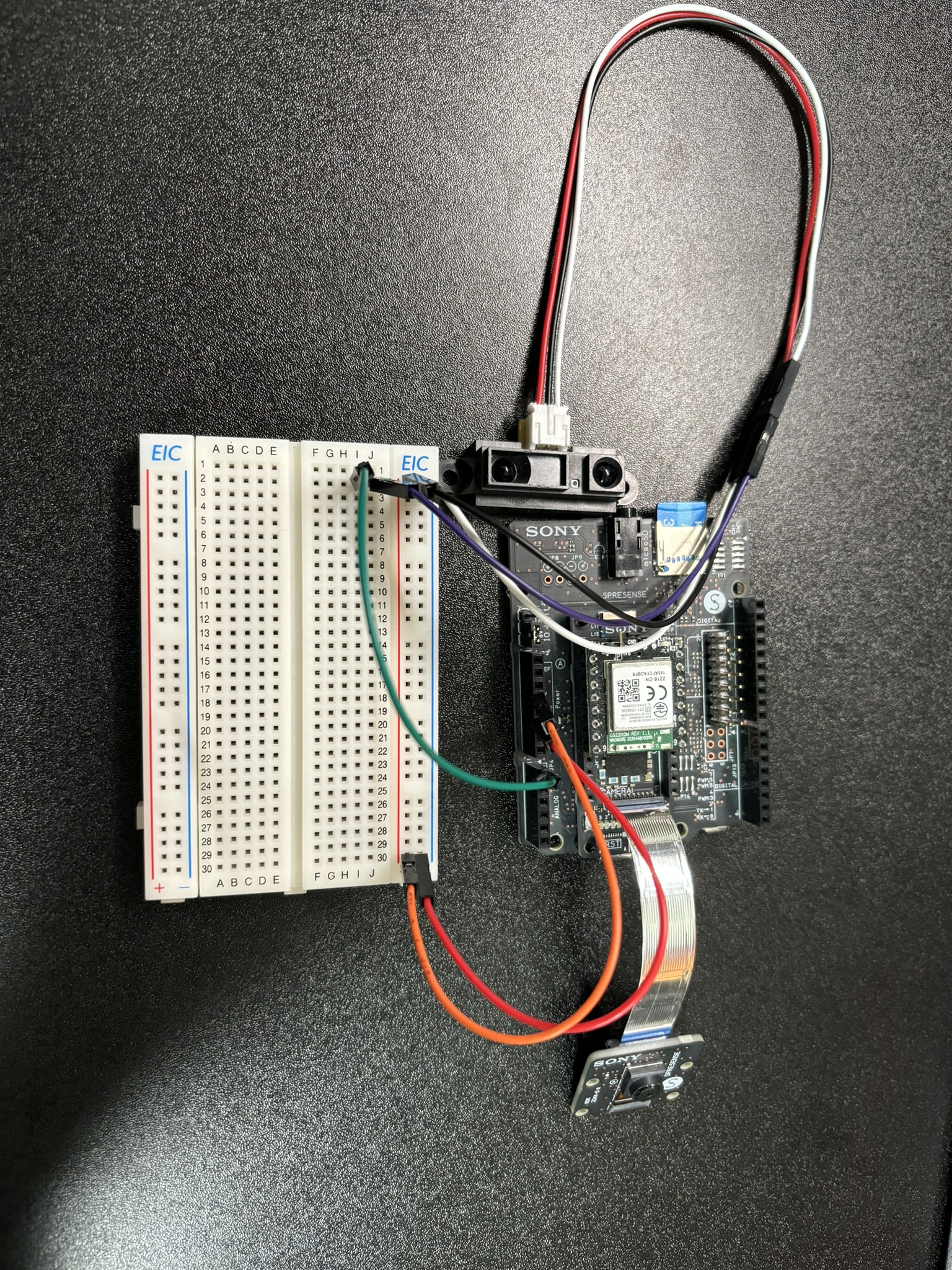 今回は猫などの小動物のエンジンルームへの侵入を防ぎ、それによる事故を防ぐことをSPRESENSEを用いて提案しました。いかにして物体を検知するかはカメラをもちいた手法や赤外線センサを用いた手法などいろいろ考えましたが、シンプルに距離をはかることによって判断することに落ち着きました。今後の展望としてはCLIP Viewer Lite APIとLINEを用いて物体を検知したときにLINEに通知を送るなどしてユーザーが事故の可能性を認知しやすいように工夫できたらよいと考えます。
