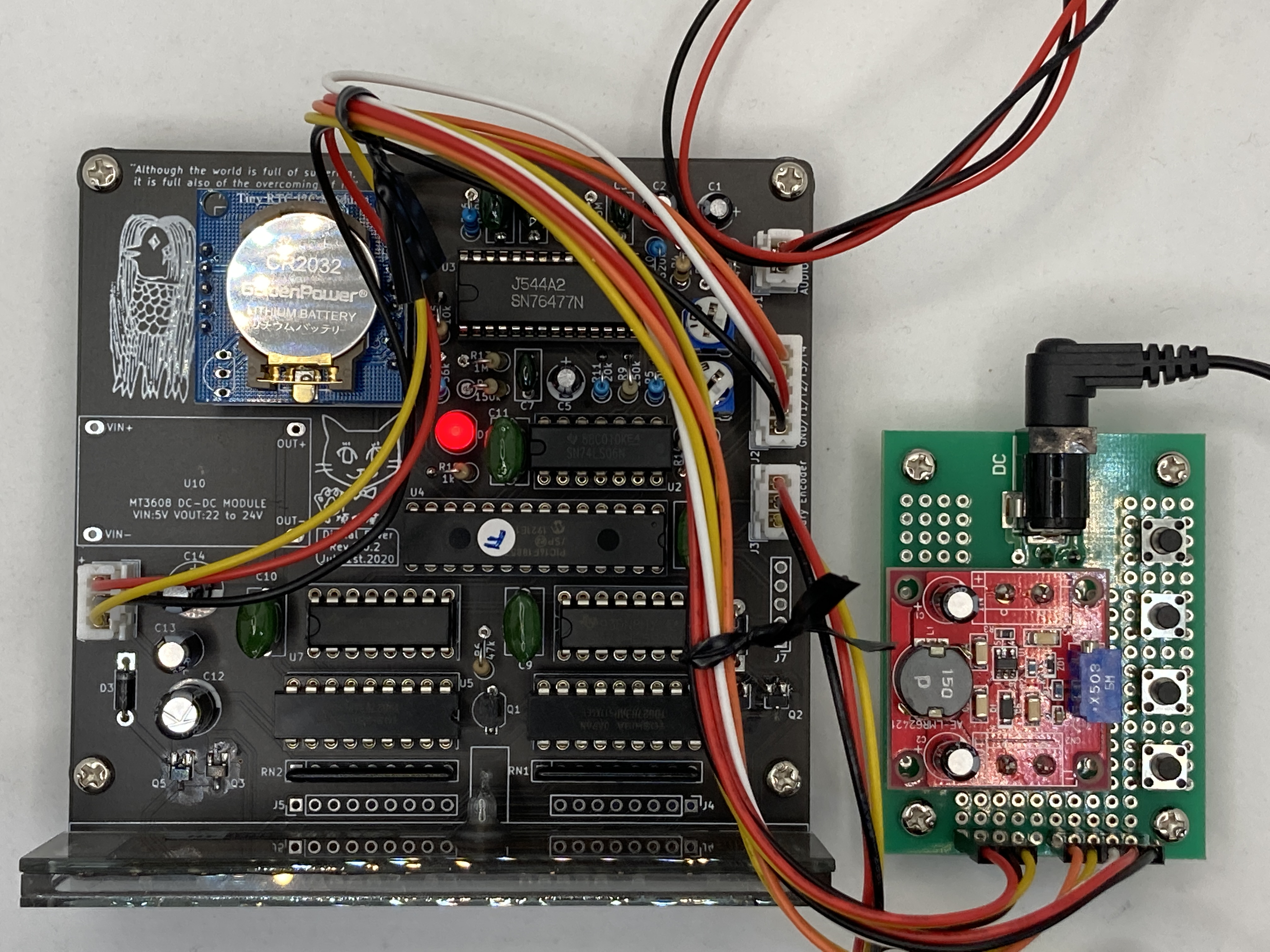電源が5Vと24Vが必要と言う事で秋月電子の「昇圧型スイッチング電源モジュール LMR62421使用キット」を使用して5Vから24Vを作りました。