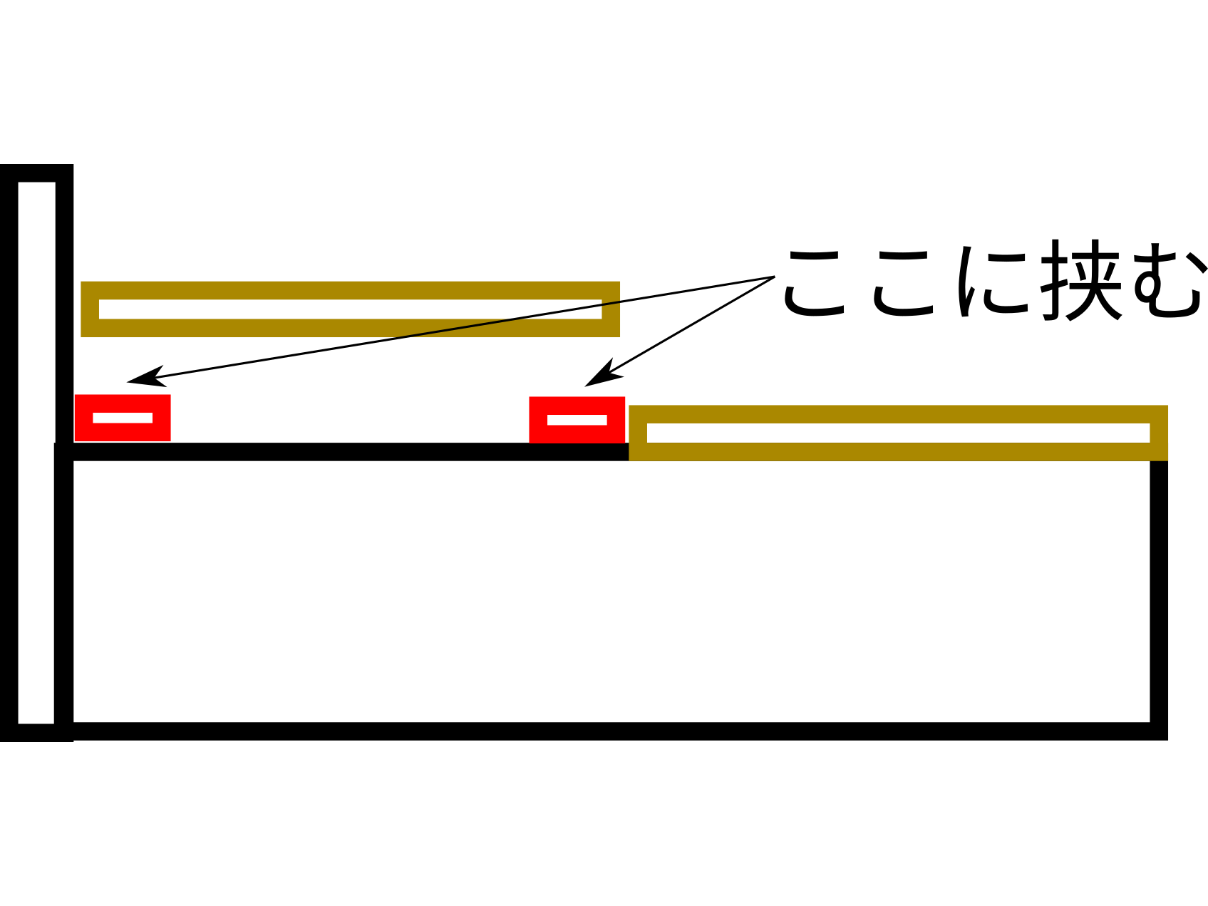 そこでこのシステムではロードセルを使って重量で分類することにしました.実際には下の図のようにベッド本体とすのこの部分の間に後述する重量センサユニットを挟む形にしました.家にあったベッドは上半分と下半分ですのこが分かれていたのでより重量のかかる上半分の下にセンサを仕込みました.