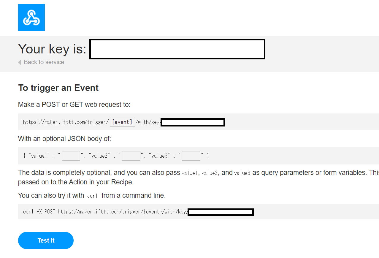 「Event Name」に行う動作名を入力し「Create trigger」をクリック