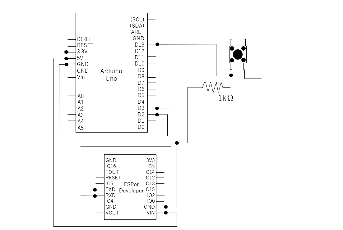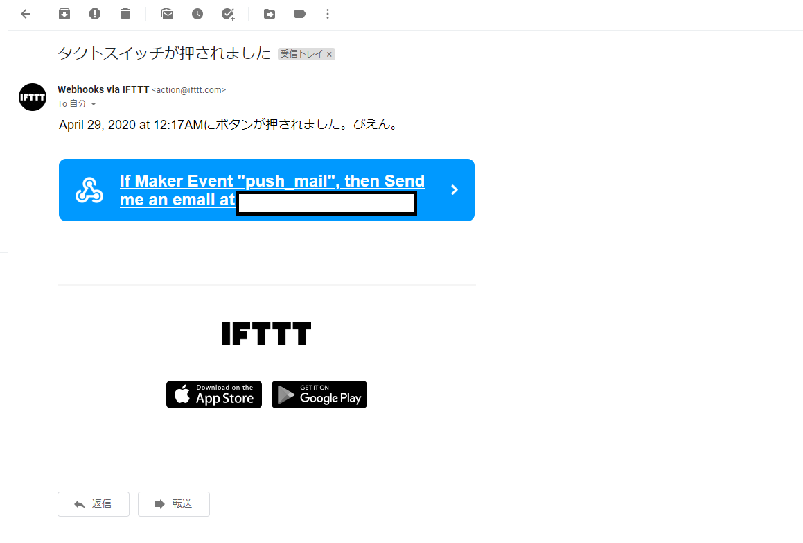 ESPerDeveloperというwifiモジュールを使用して、タクトスイッチが押されたら特定のメールアドレスにメールを送信するという動作を、IFTTTというwebサービスと連携して行う。