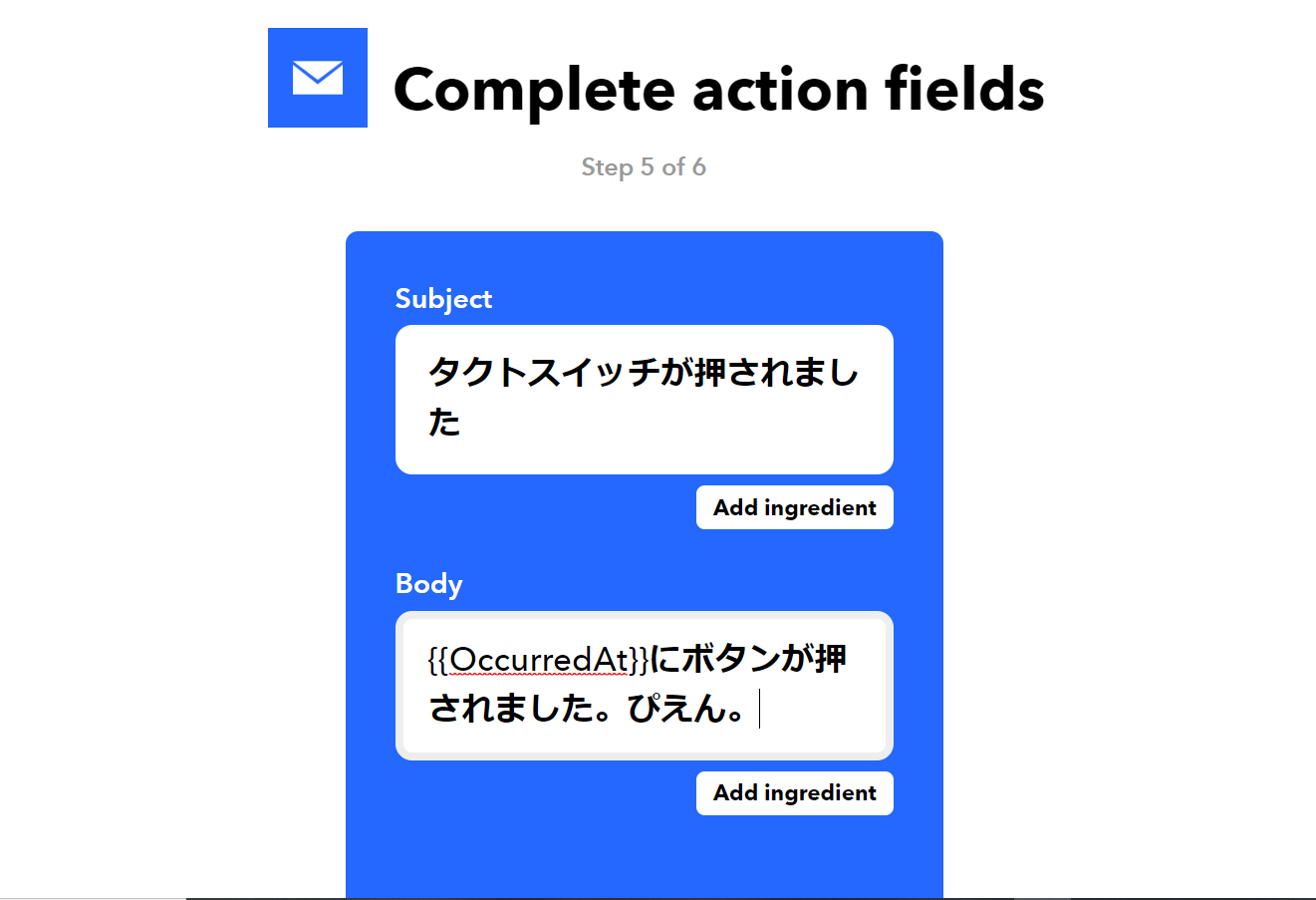 (タグを使えばさまざまなデータをBodyに載せれます。ちなみに「OccurredAt」は、Webhooksが作動した時の時刻がメールに載せれます)