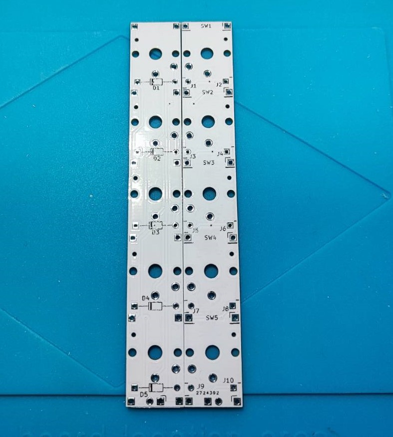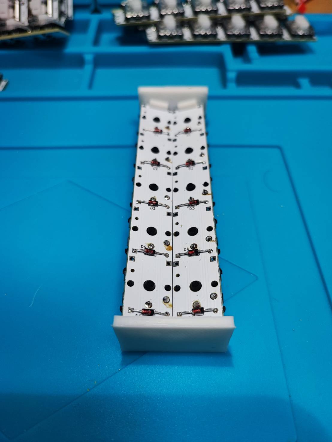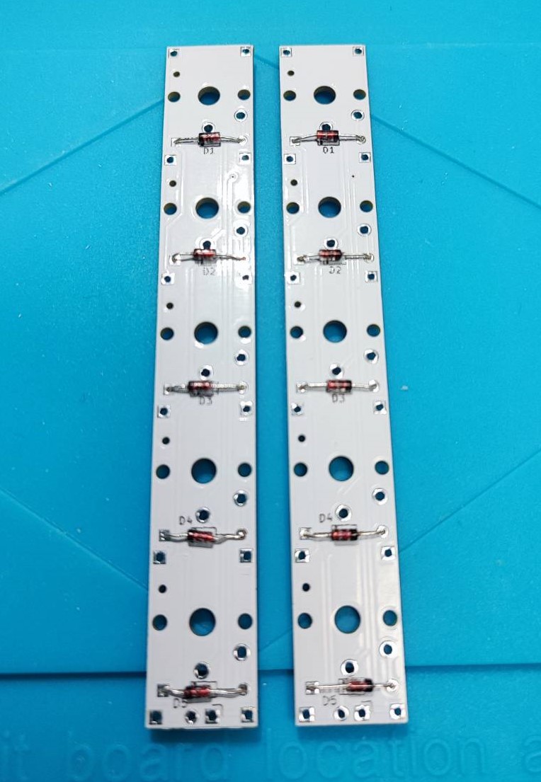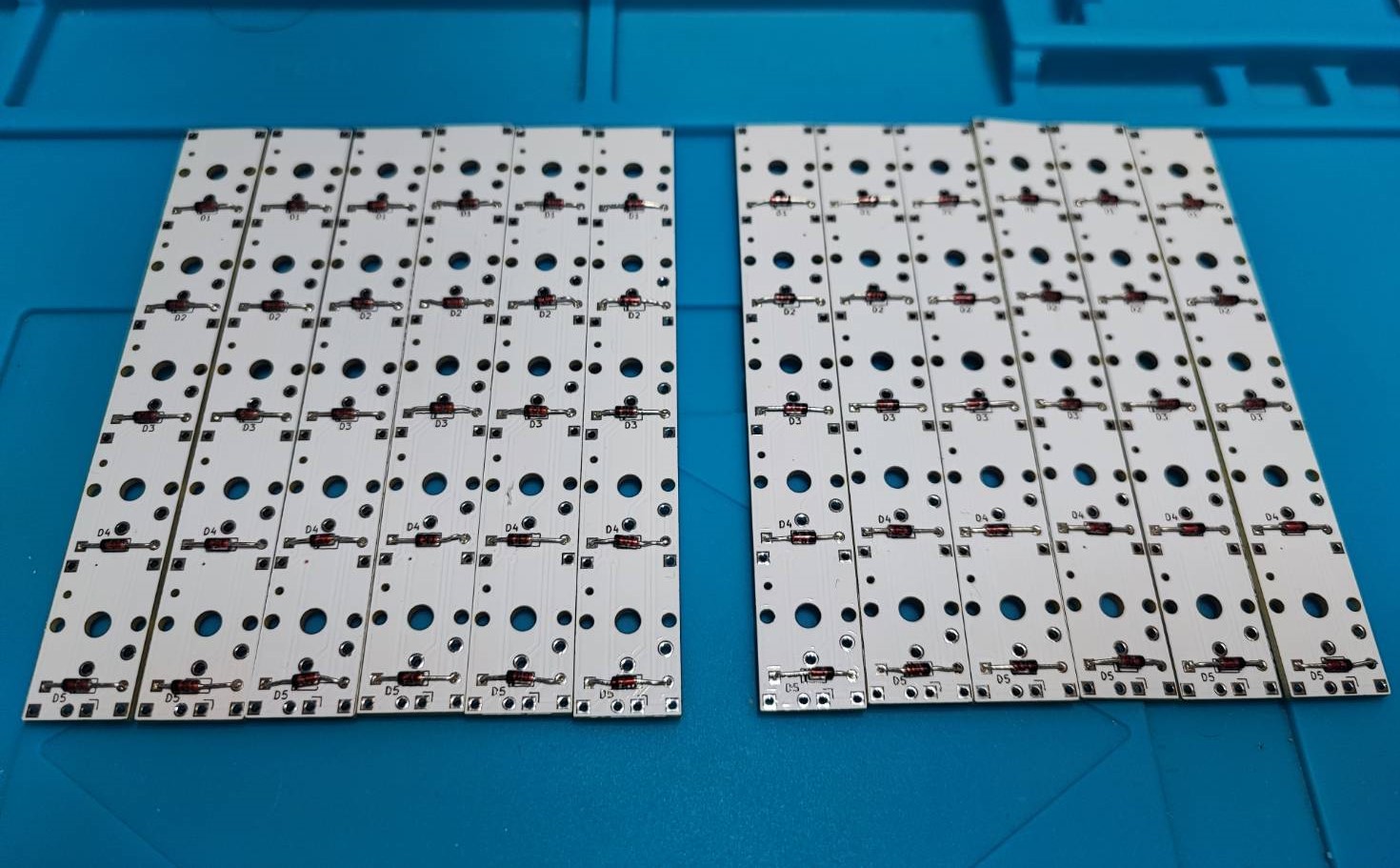 key基板12枚に1枚あたり5個のダイオードをはんだ付けしました。