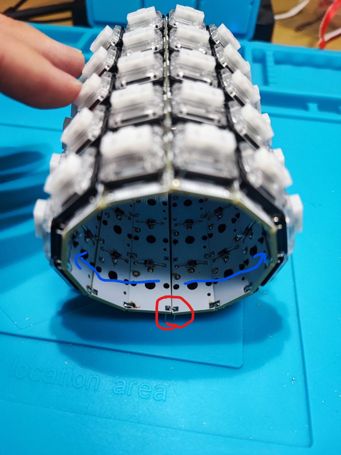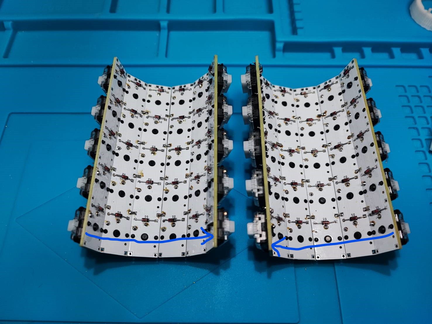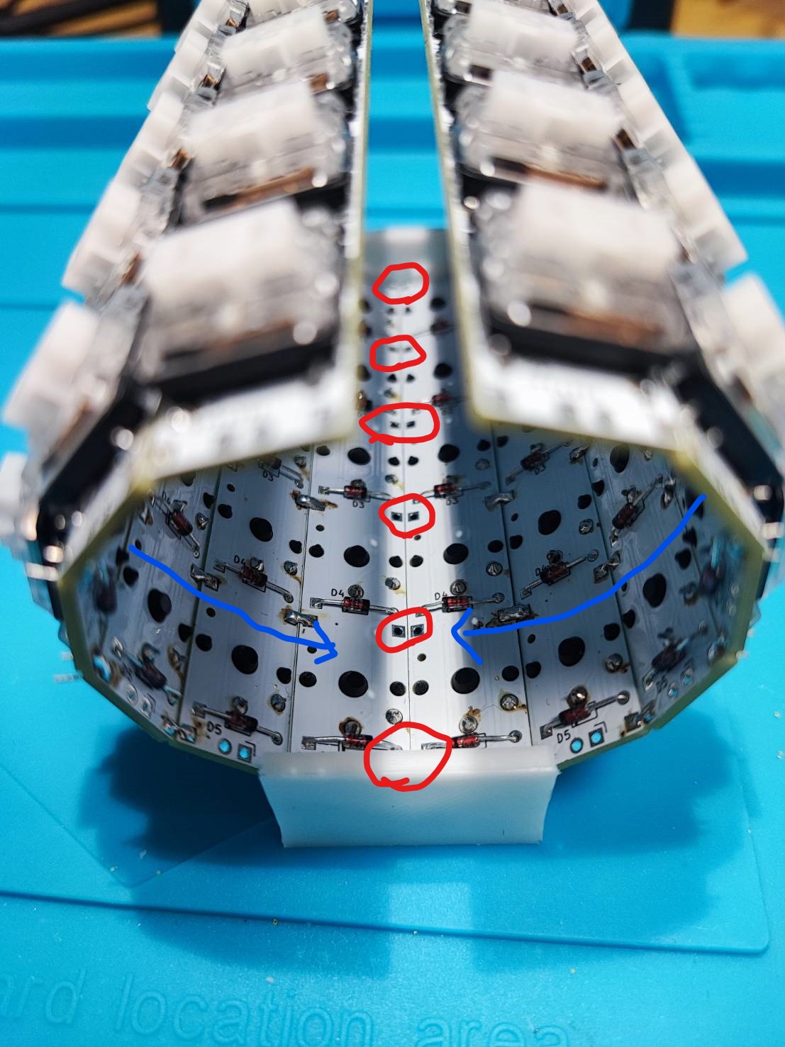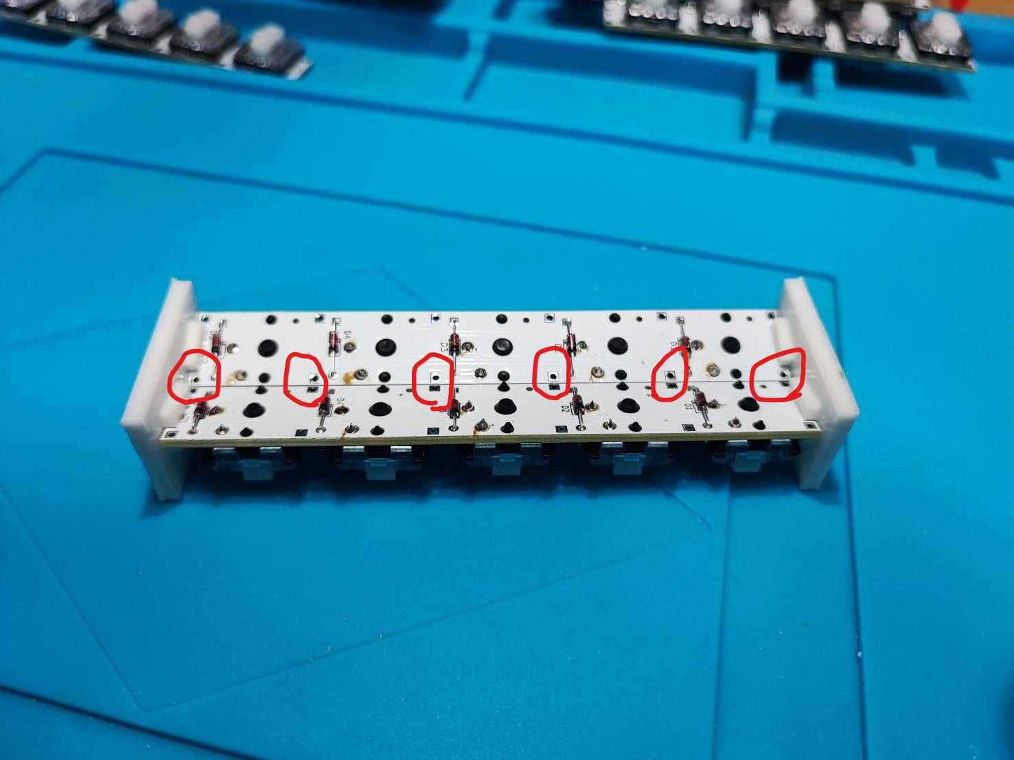 各key基板ごとに2箇所計24箇所はんだ付けを行いました。
