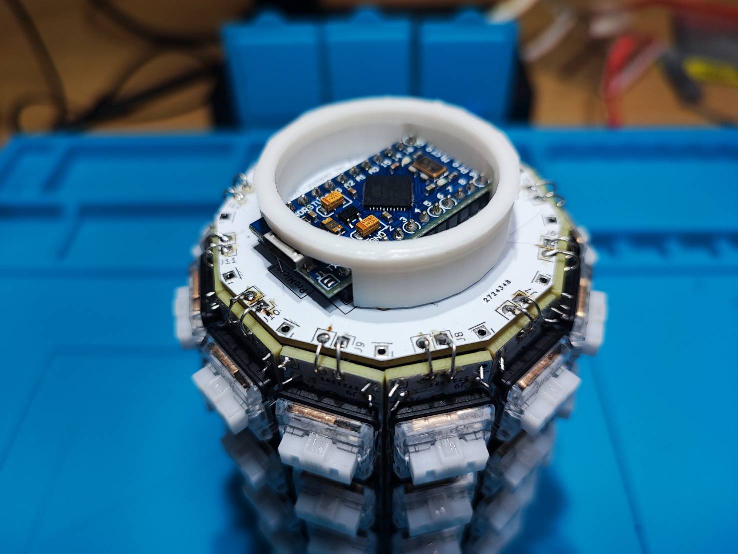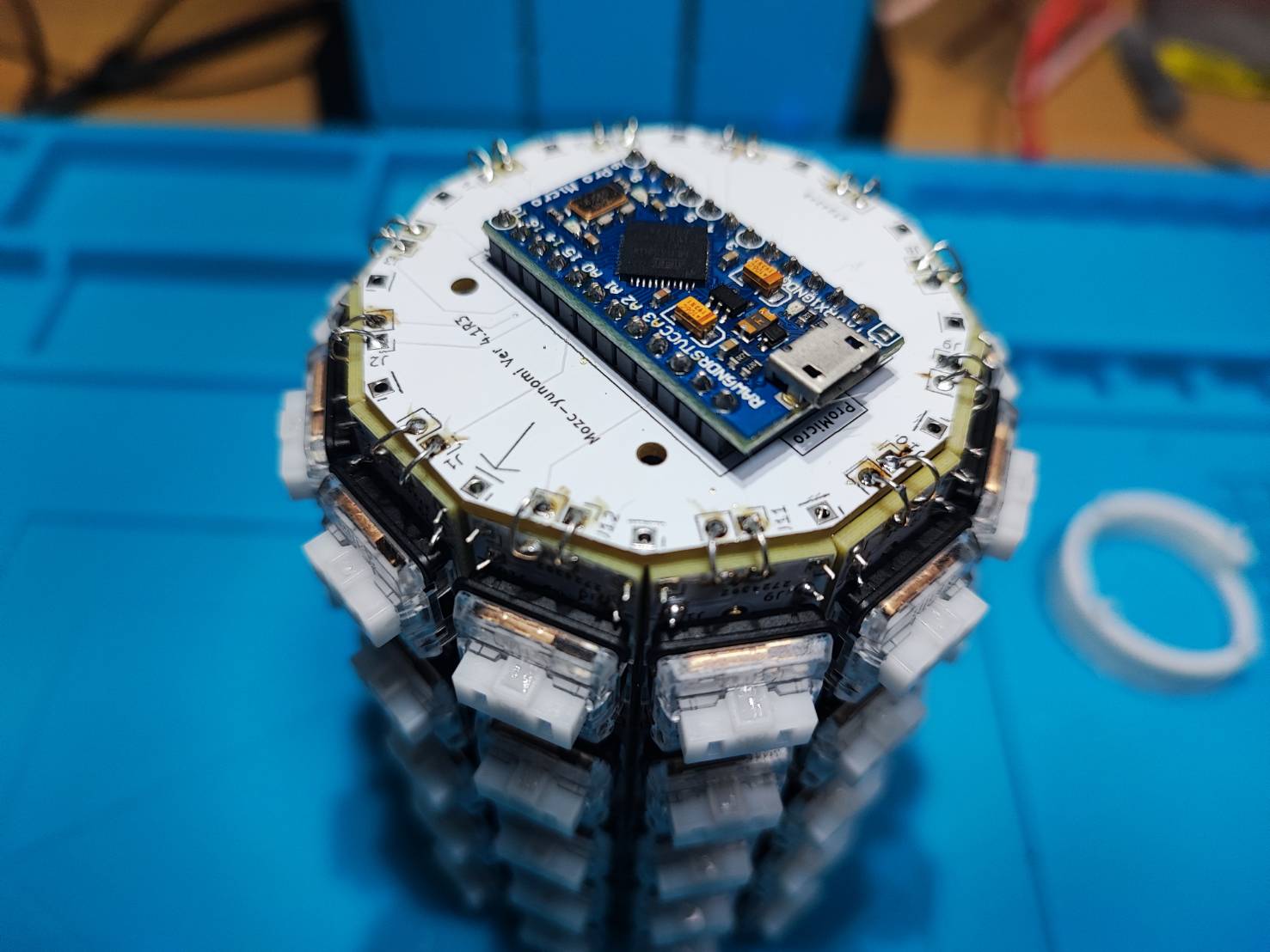 3Dプリンターで印刷した治具を使用して基板同士をはんだで繋げていきます。