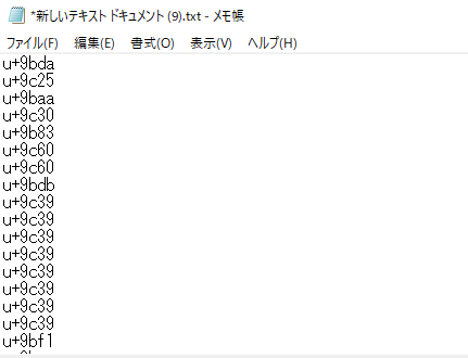この状態でメモ帳等を開き、キースイッチを押すと魚漢字が入力されているはずです。