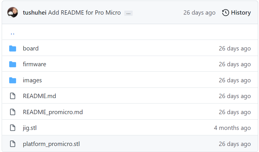 表面実装部品を使用したものとArduino Pro Microを使用したものの2種類があり、今回は、はんだ付け難易度低いProMicro版を使用しました。