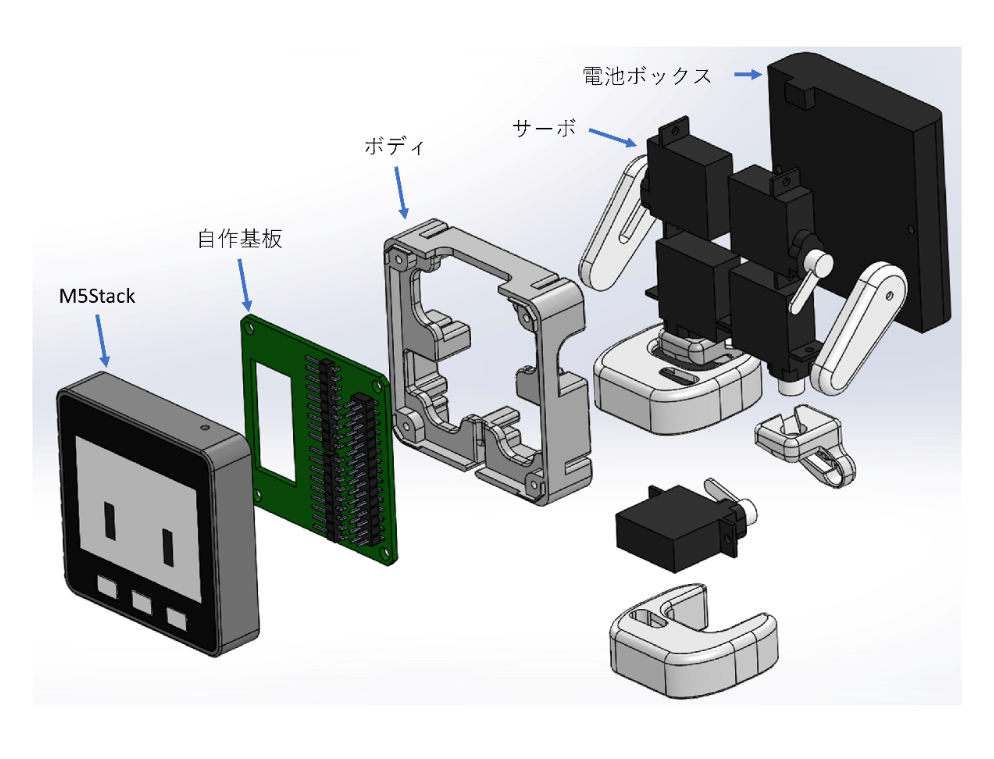 | ボディ | 3Dプリンタにて製作。サーボをはめ込むことで固定ができる。 |