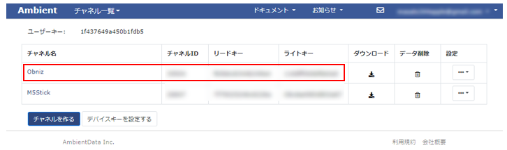 事前準備:Ambientのユーザ登録とチャンネル登録