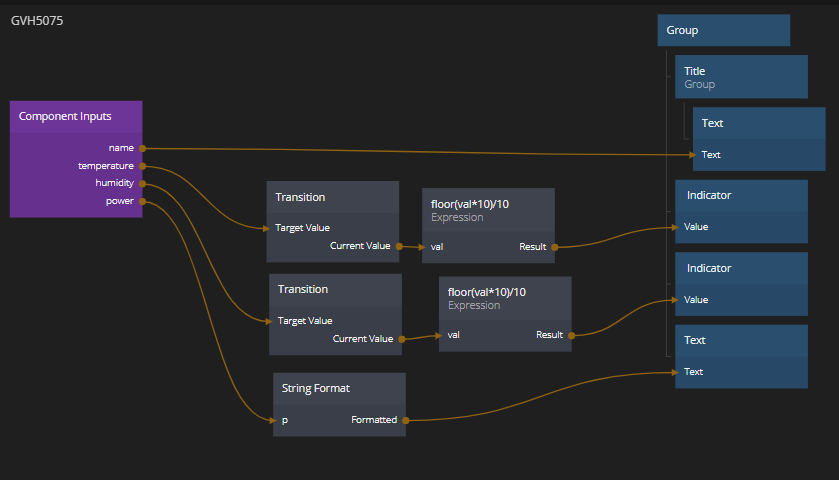 ポイントとしてはBLE温湿度計の複数対応の部分です。ObjectノードのIDにBLE機器のLocalNameを入力にしているので、Noodl上でも機器毎(LocalName)に温度・湿度を取得することが可能です。