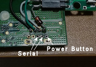 USB接続ピンの下は、シリアル通信のピンが割り当てられており、ここに信号を送ると電源ボタンのランプの制御や、ペアリングモードにすることができます。