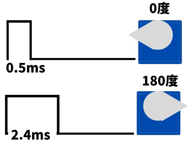 | 0.5ms~2.4ms | ±約90度(0度~180度) |
