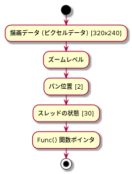 - マンデルブロ集合の計算結果であるピクセルデータはもちろんのこと、ズームレベルやパン位置といった描画パラメータ、さらには各スレッドの状態情報など、様々なデータが格納されます。