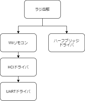 Wiiリモコンと通信するためには、BluetoothのHCIレイヤを操作する必要があります。手軽に入手するには、パソコンにUSBで接続するタイプの小型のBluetoothアダプタがありますが、ミニ四駆のボディ内空間を考慮すると、スペースの的に厳しいです。