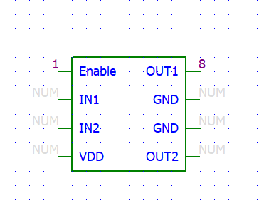 以下の写真のように基板のパターンを追うと4番ピンがVDD、6、7番ピンがGND、5、8番ピンがモータへの出力ピンであることがわかります。残りの1~3番のピンは回転方向などの制御用に使われていることも推測できます。
