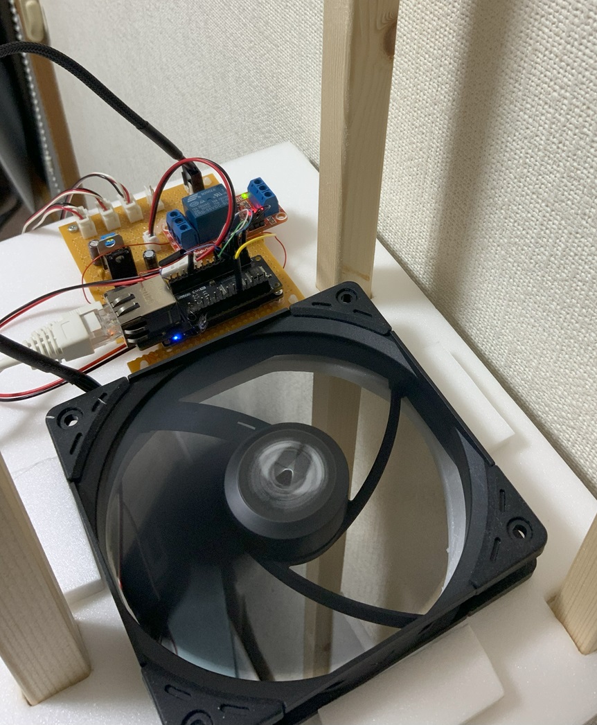 ファンはDC12Vアダプタをリレー経由で駆動します。