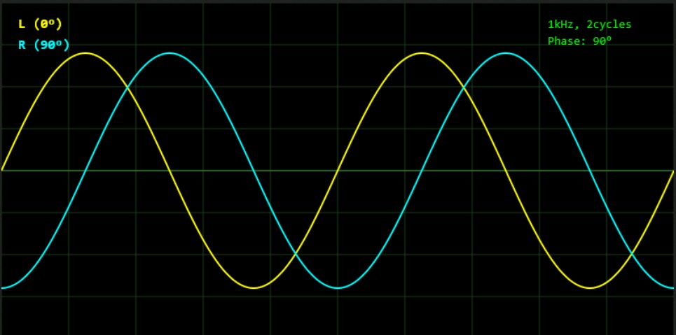 そのことを示すため、周波数(1kHz)は同一で位相のみが異なる音源を用意した。