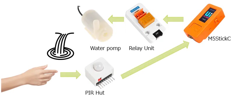 そこで、以下の特徴を持つポータブル自動水栓をM5StickCを用いて開発しました