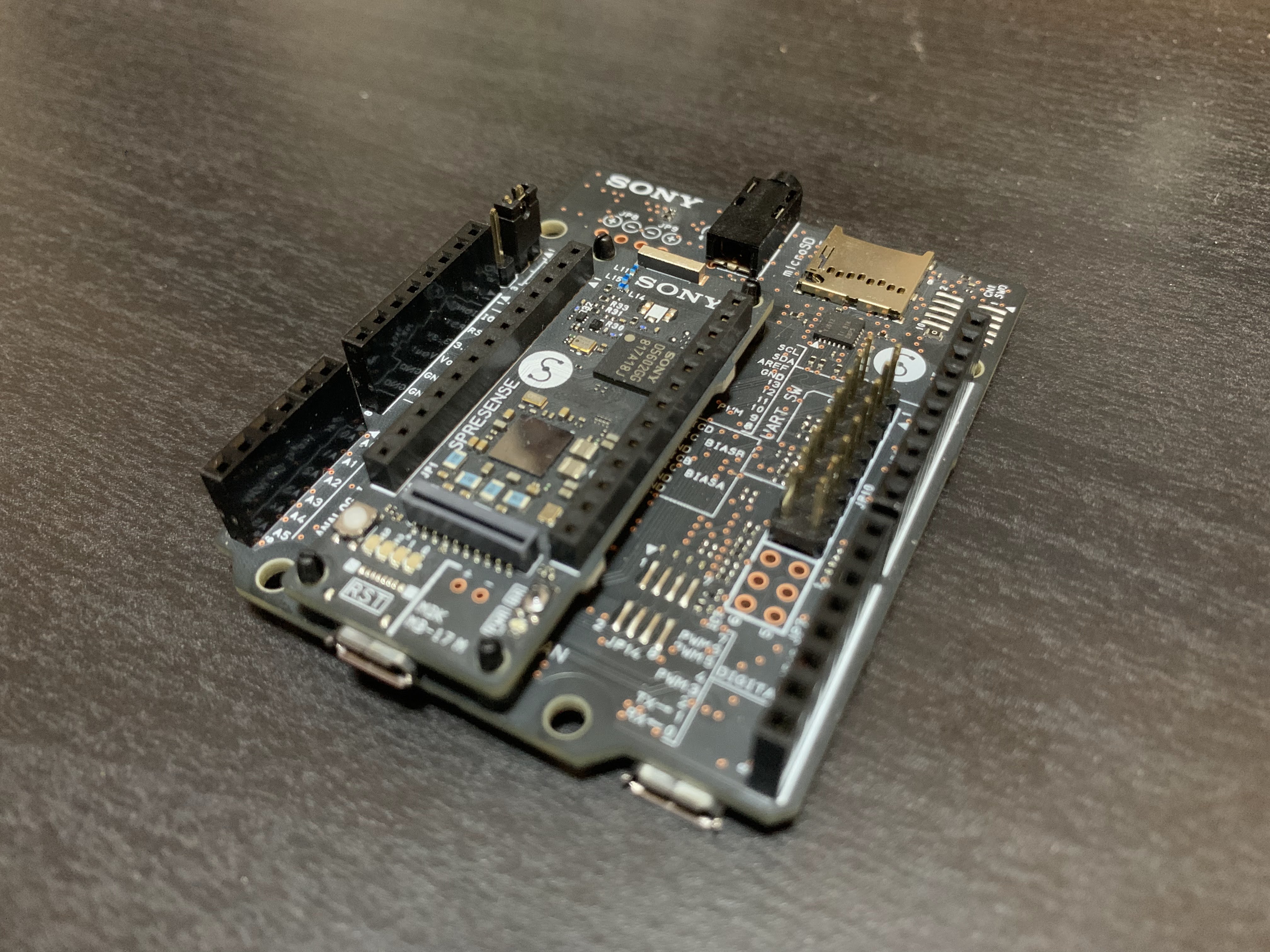 今回使用するマイコンです。このマイコンはSONYが開発しており、この小ささでGPSやハイレゾを搭載する超すぐれもの。マルチコアなんだって…(すごい)。