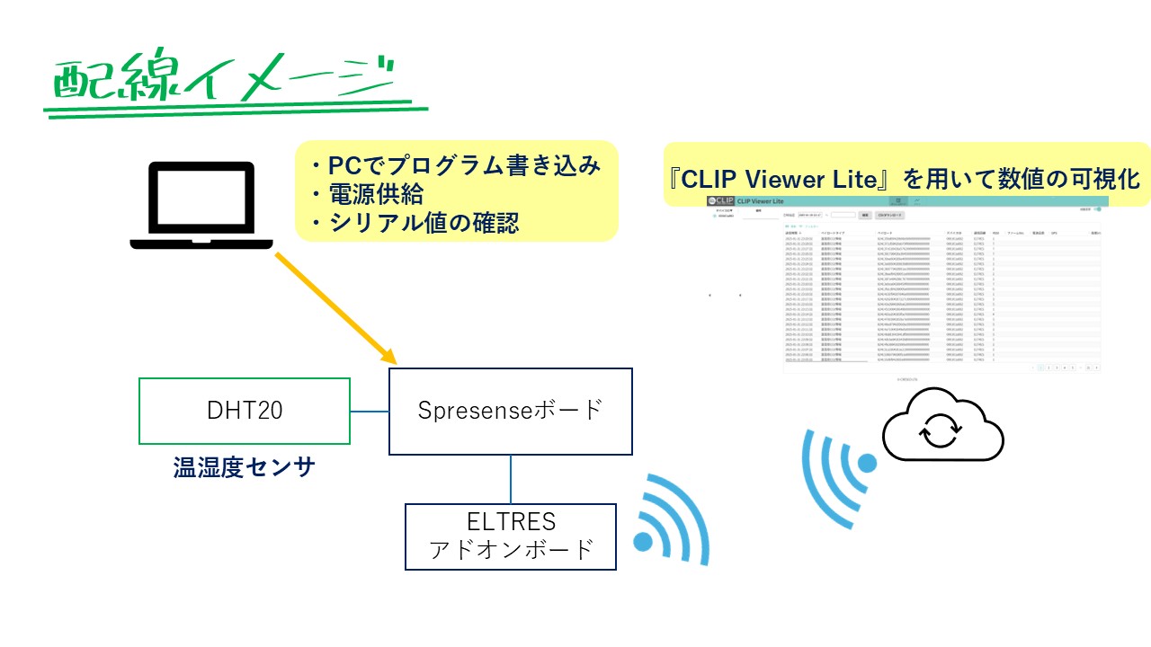 Sony Spresense と ELTRES アドオンボードを使い取得した温湿度をクラウドに送信。