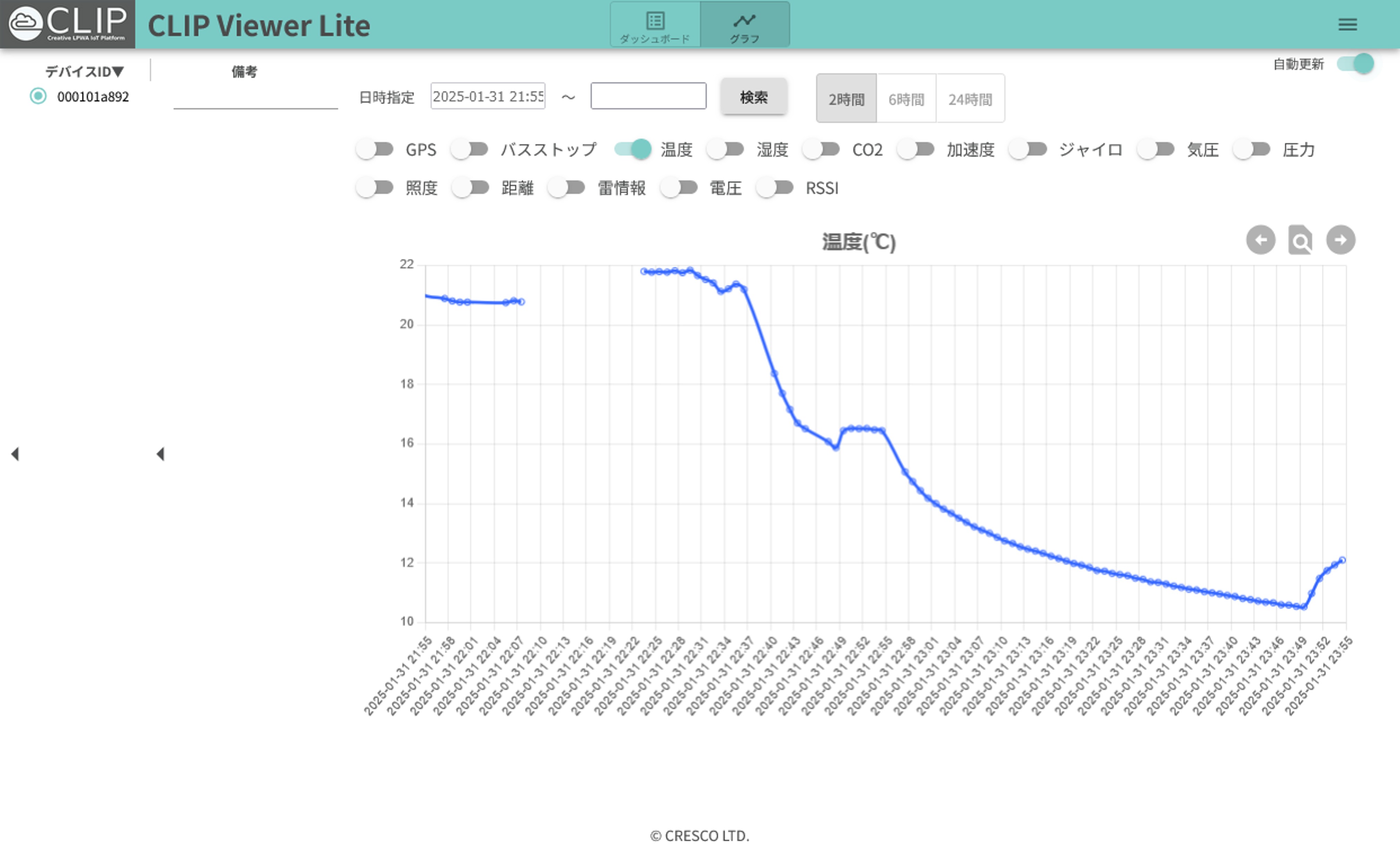 写真のようにデータの受信ができ、クラウド上に温湿度の情報が反映。