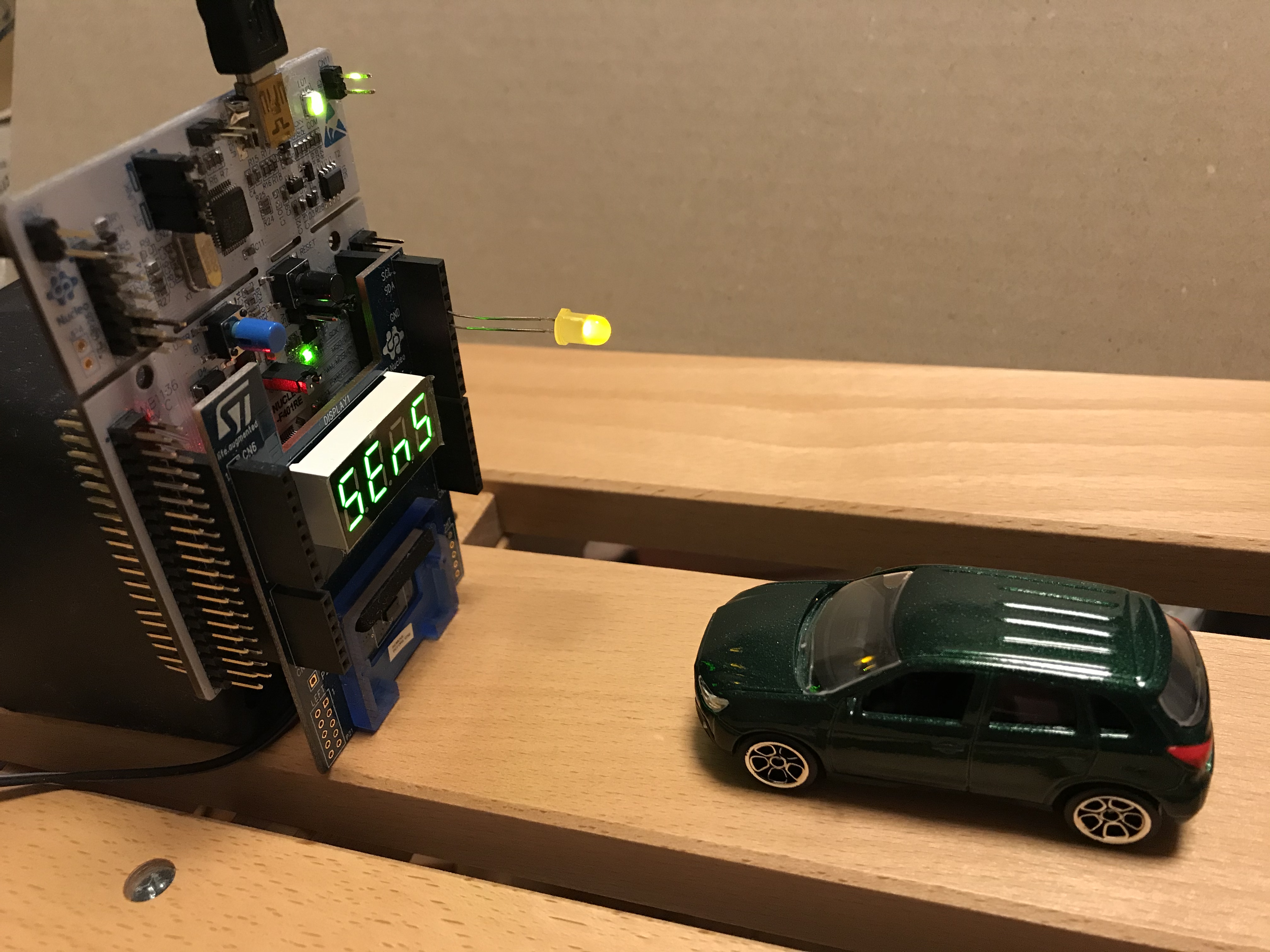 この装置は現場の作業員を車両突入から保護する目的で実装したプロトタイプです。