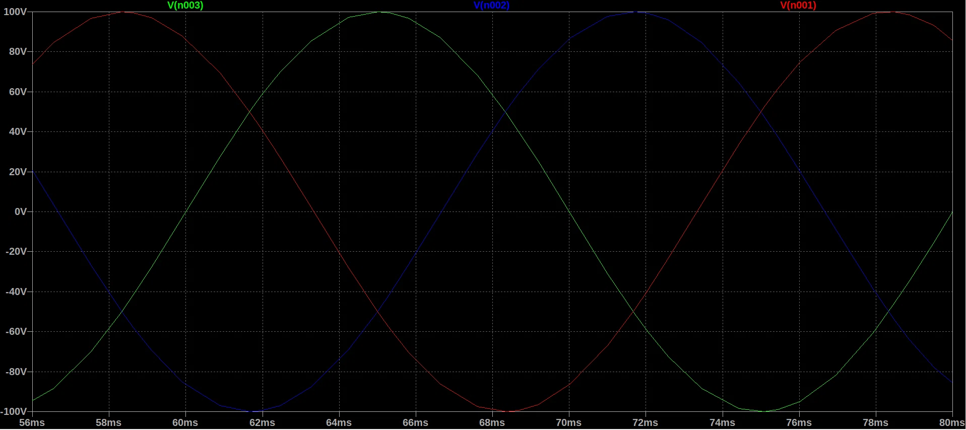 このとき直流電圧va=100,f=50,θ=0としてtを横軸にとると