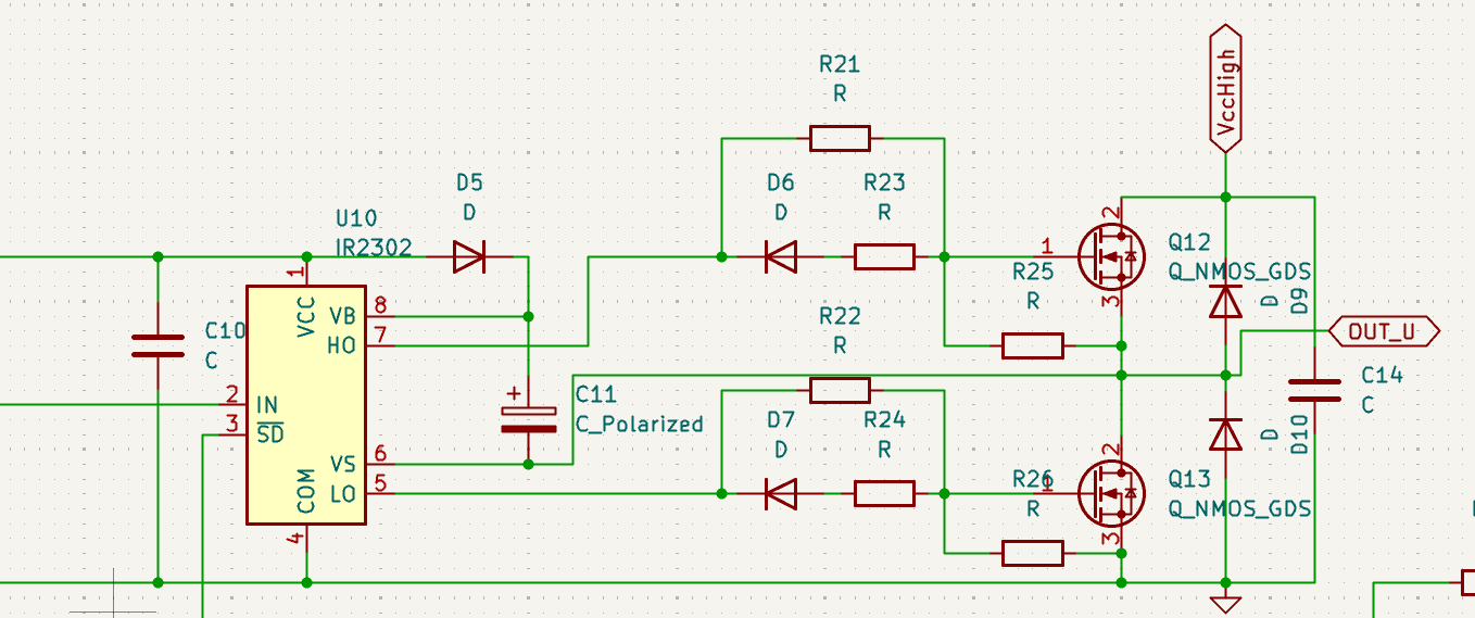 今回はNchMOSFETでスイッチングを行うため、専用ゲートドライバIC IR2302を用いて駆動を行います。