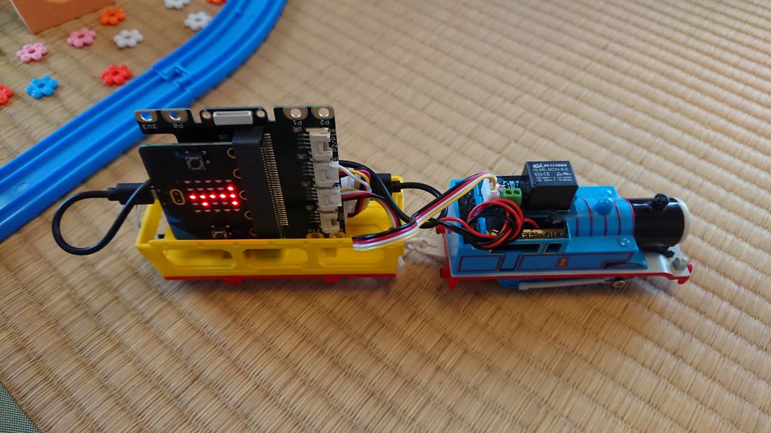 プラレールをハックしてmicrobitをつかって次の4つの機能を追加します。。