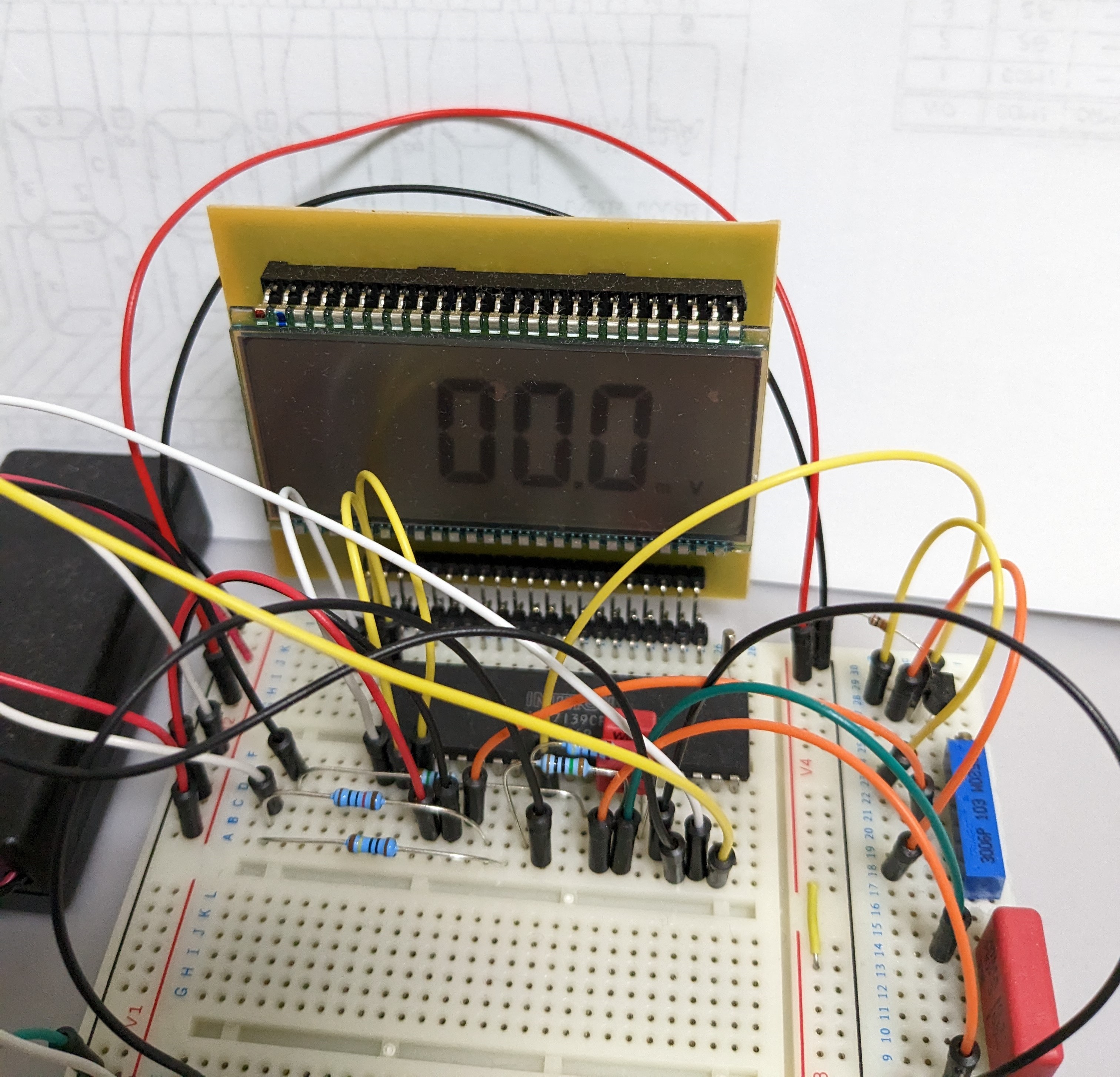 まずはICL7139周りの回路を組み、動作することを単体で確認しました。
