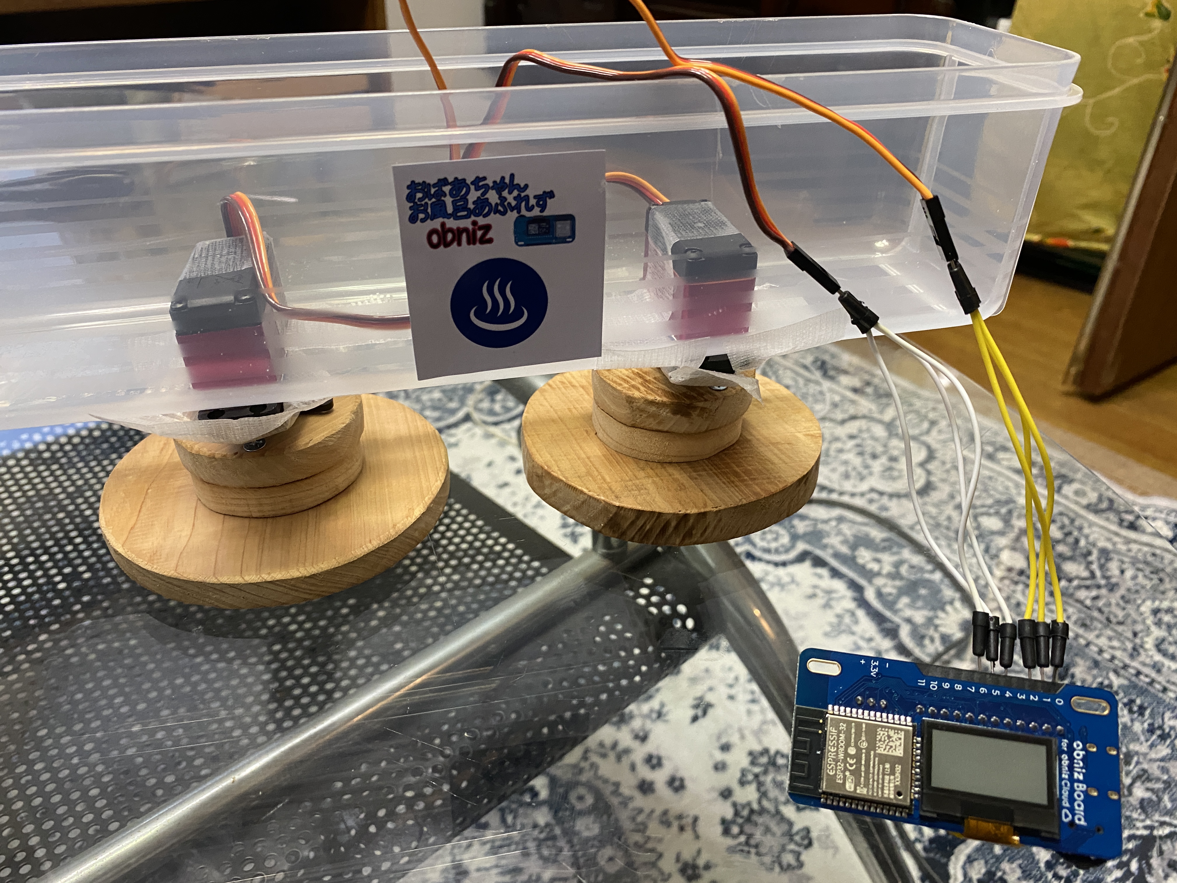 そんなおばあちゃんのために、お風呂の水を自動で管理してくれるシステムがあればいいと思い、お風呂のIOTにチャレンジしました。コードプログラミングはまだまだ勉強中だけど、obnizは子供の科学で見たことがあります。ビジュアル言語に慣れている僕にもできると思い、チャレンジしました。