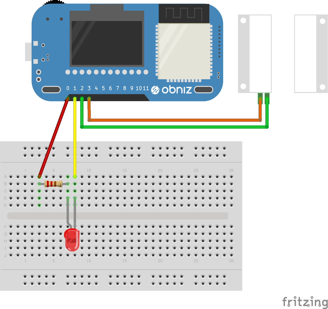 var led = obniz.wired("LED", { anode: 0, cathode: 1 });