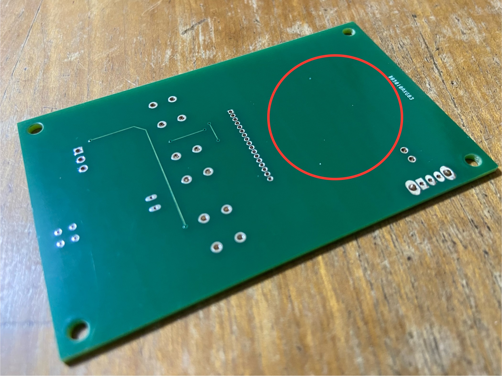 普段利用しているメーカーのプリント基板と比べて、PCBGOGOの基板は端の処理が丁寧で綺麗な仕上がりでした。写真のようにバリなどは一切なく、やすりがけも必要ありませんでした。