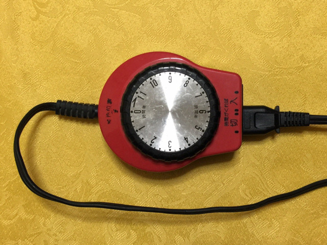 市販のダイヤル式ACタイマーです。学生時代に買ったものです。