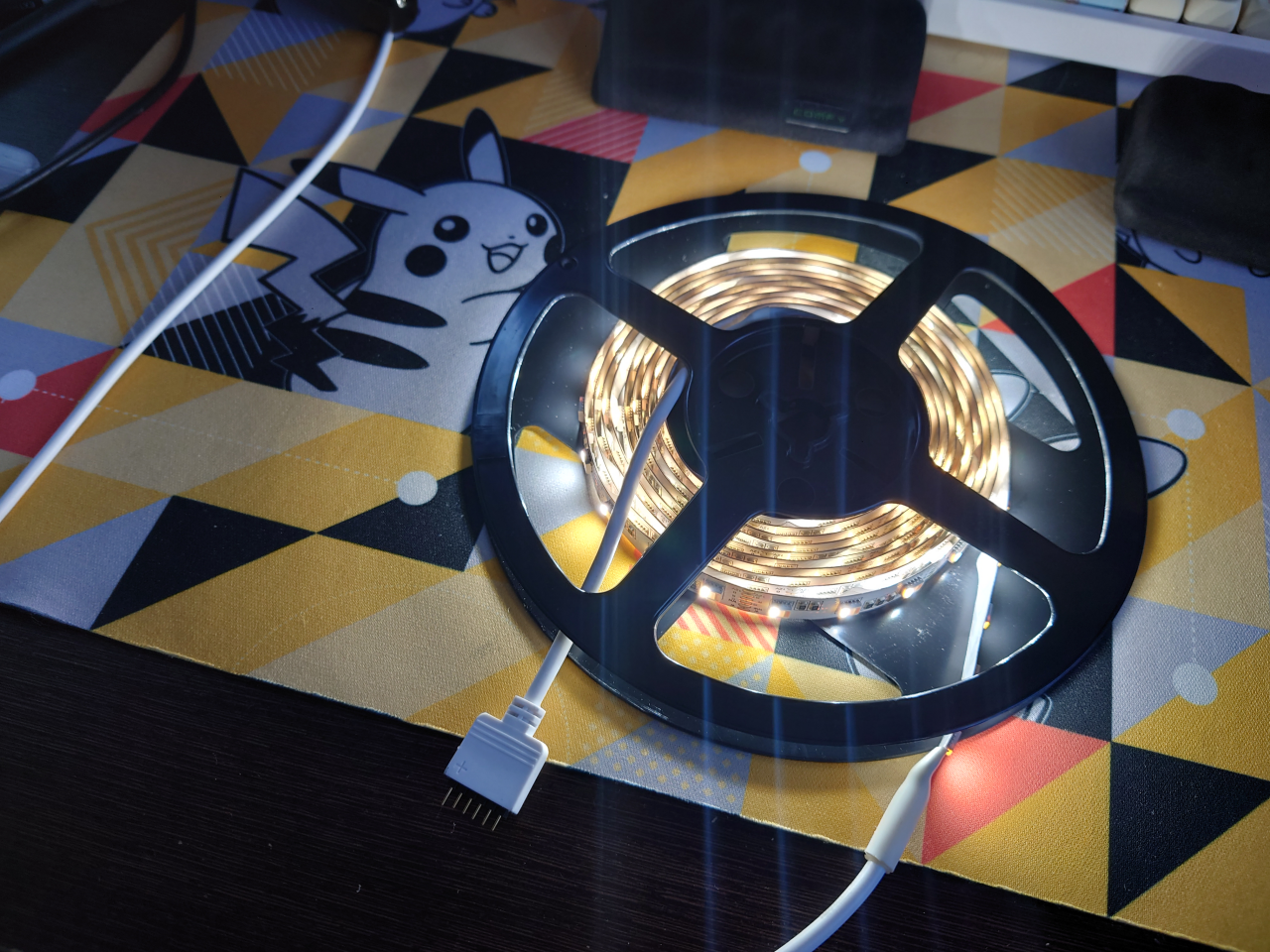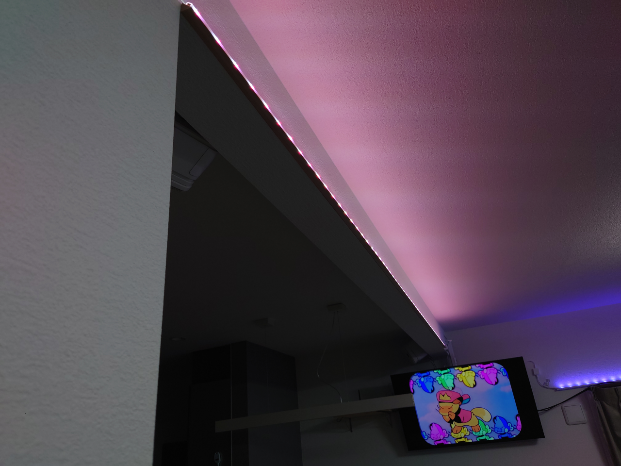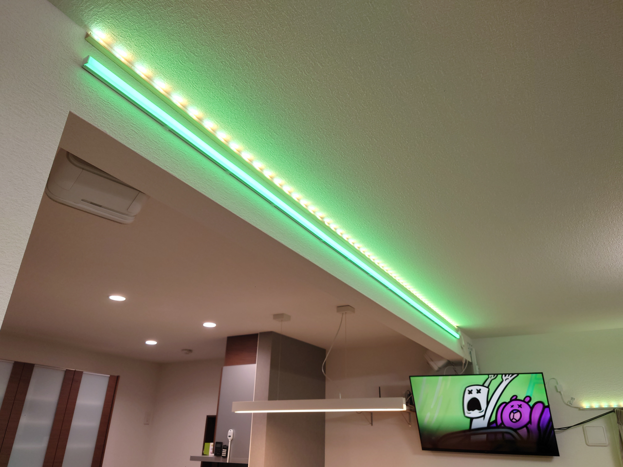 増設したマルチカラーLEDテープも、ばっちり同期で光ってくれます!。