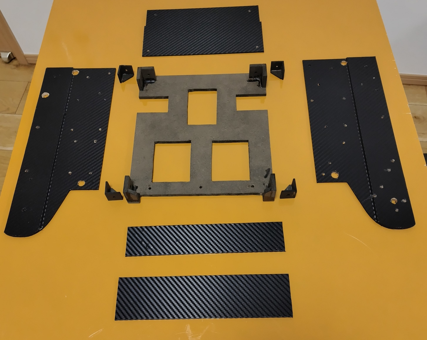 木材(MDF)を切り出し穴あけ。部材同士はネジで締結します。