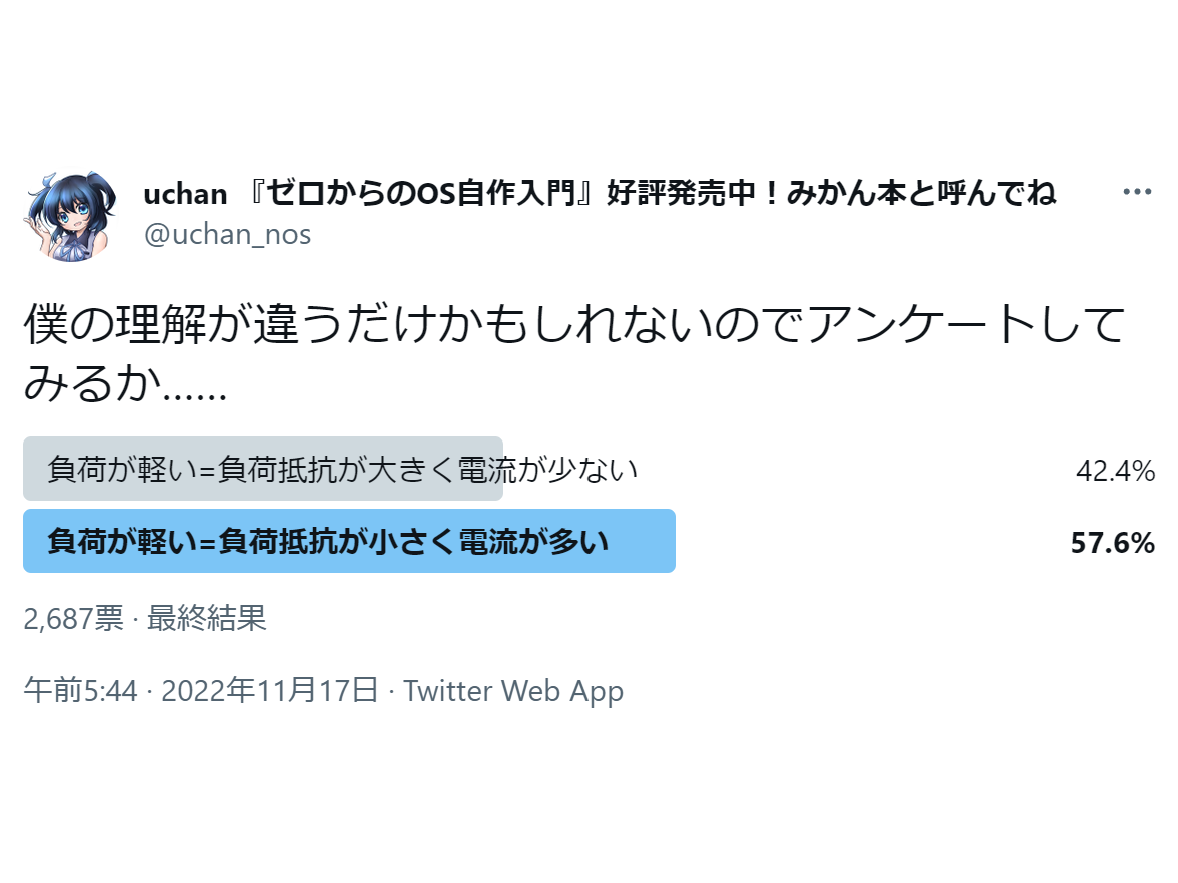 電子回路によく「負荷抵抗」や、単に「負荷」という言葉が良く出てきます。関連して「負荷が軽い」や「負荷が重い」という表現も良く見ます。負荷が軽いと言った場合、それは負荷抵抗が小さいことを意味するのでしょうか。大きいことを意味するのでしょうか。この記事ではアンケートや文献の調査を行い、人々がどんなイメージを抱くのかを調査しました。