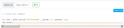 上で取得したデータを貼り付ければ、obnizを赤外線リモコンとして使えるようになります!