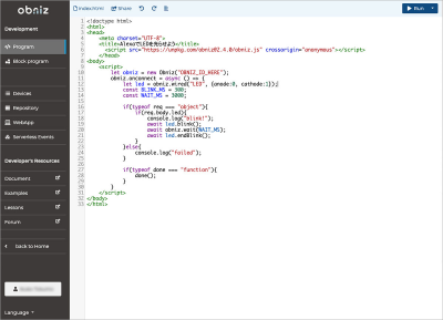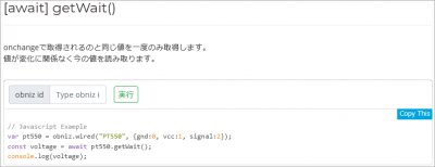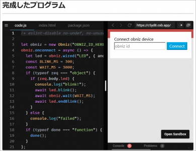 ちなみに、obniz idのところに自分のobnizの番号を入れれば、このままダイレクトに実行できて素晴らしいです!!