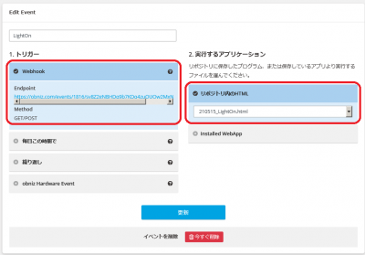 最終的にobnizのリポジトリに登録した内容で、サーバーレスイベントからこれを呼び出す形になります。