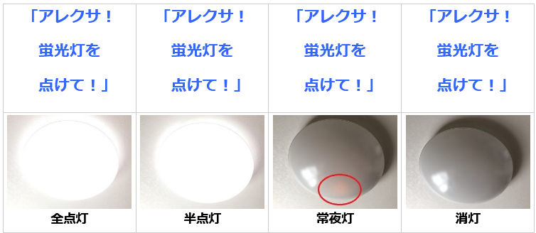 例えば、音声命令で点灯させる場合、常夜灯が付いている状態からであれば・・