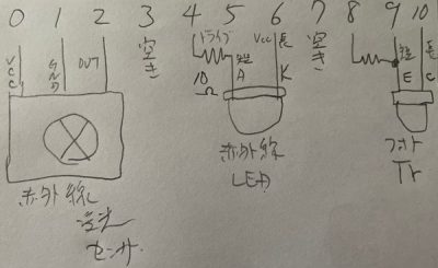 左の赤外線センサは最初のリモコンデータ取りの時のみ使います。(最終のプログラムにはありません)