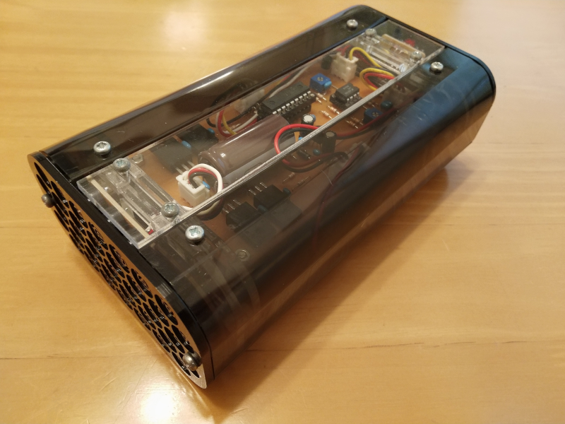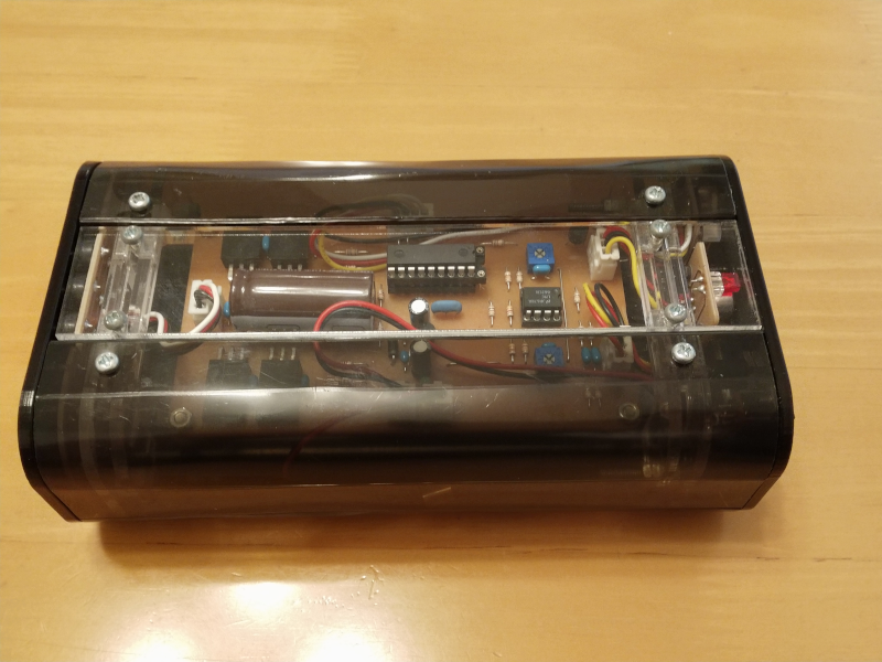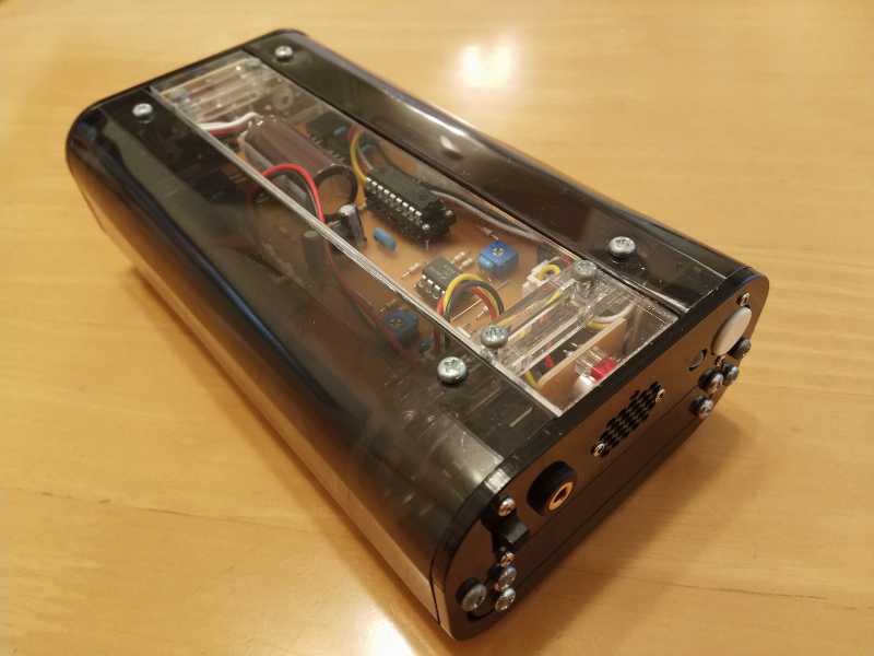 回路はkicadで設計したものをCNCで加工しました。外装はアクリルや100均の下敷きを使って製作しています。