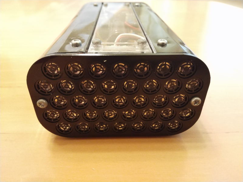 マイコンの性能の関係で入力信号の分解能が400段階しかない上に、超音波に可聴音を乗せるという無理をしているため音質は残念なことになってしまいました...。