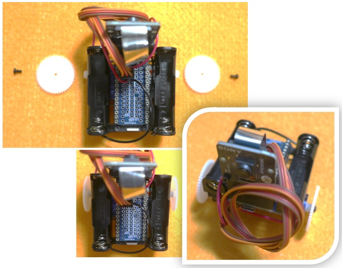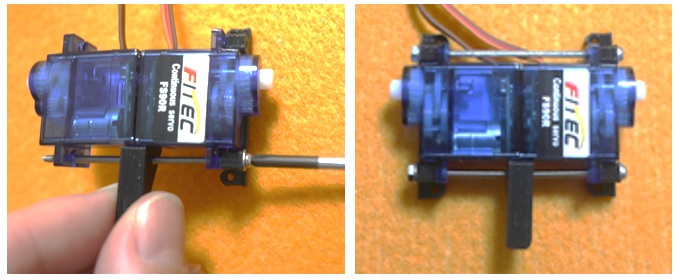 ・接続先:右側の回転サーボモータは奥側に、左側の回転サーボモータは手前側に接続してください。