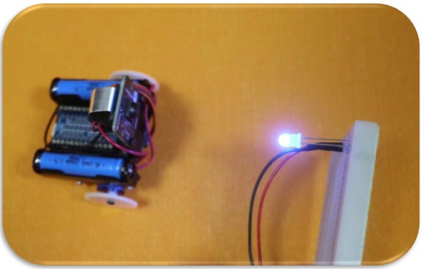 カメラの前に青色LEDを点灯させると、ロボットが青色LEDを追いかけます。
